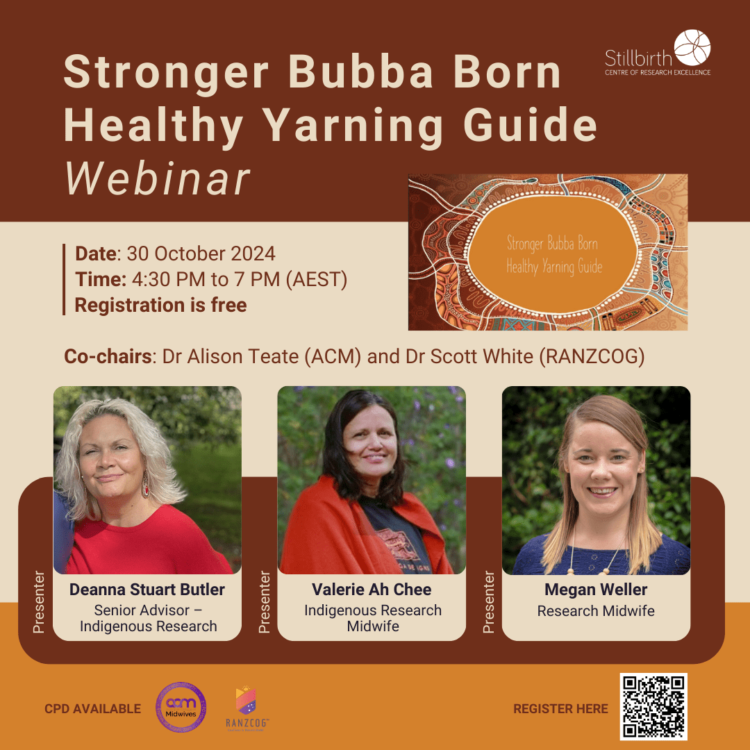 Join us on Wednesday, 30 October from 4:30pm to 7:00pm (AEST) to connect and learn together, to improve pregnancy care and outcomes for Aboriginal and Torres Strait Islander women and families across Australia.